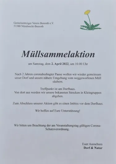 02.04.2022Einladung Müllsammelaktion am 02.04.2022